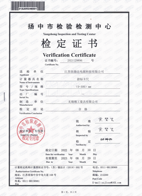 游标卡尺检定证书(欣