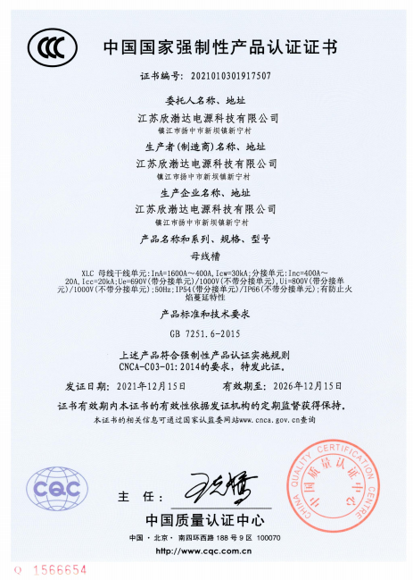 上一篇:XLC母线槽产品认证证书(4000A-1